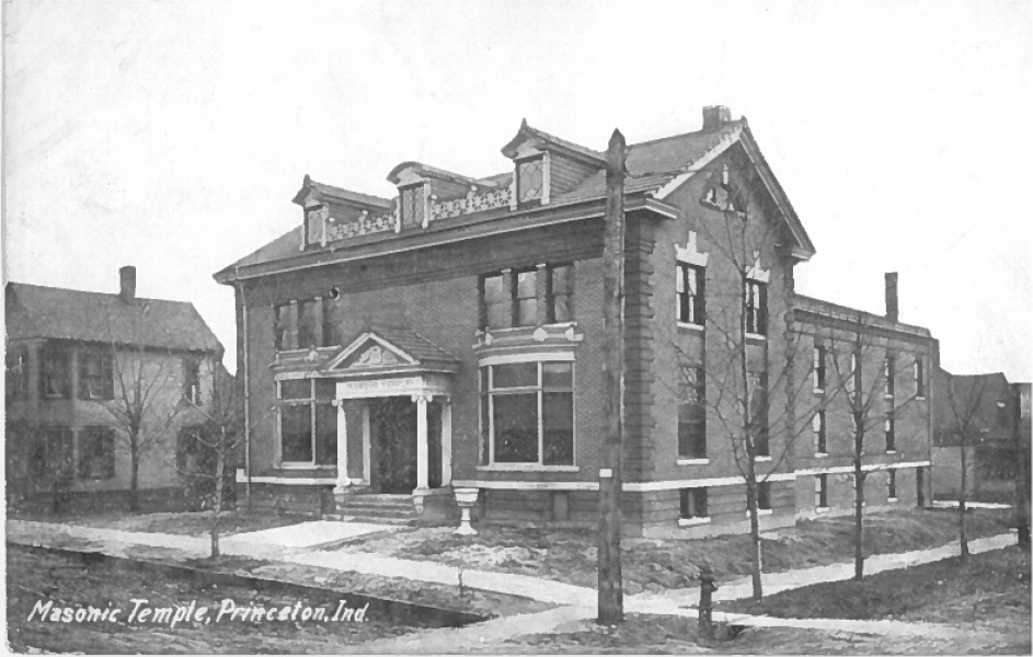 Freemasonry in Princeton dates from the year 1820 when a number of brethren, members of Vincennes Lodge No. 1, organized the first Lodge under a dispensation issued to Randolph West as Worshipful Master, Wm. B. Dimick as Senior Warden and Walter Wilson as Junior Warden.